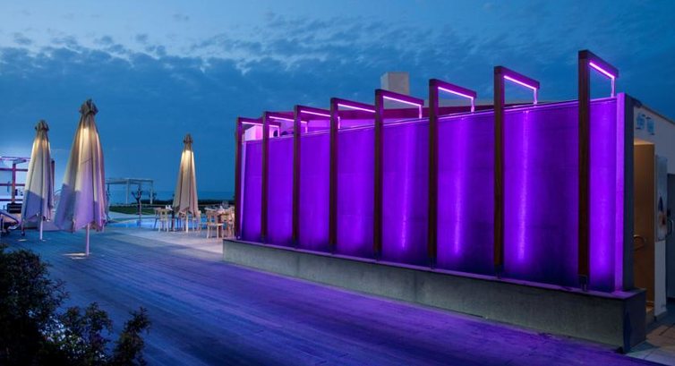 За два года тут значительно ничего не изменилось. Пляж, как и был, муниципальный. Местами загажен туристами. Цена за лежак и зонтик — по 2.5 евро. То есть если взять 2 лежака и зонт, то 7.5 евро придется заплатить. Деньги в этот раз собирали исправно. Цена действует на сутки. У отеля есть свой выход к морю, но там нет пляжа, а вход в море с каменной плиты. Кого это не пугает — можно купаться там, но с детьми это вряд ли получится. Море очень чистое.