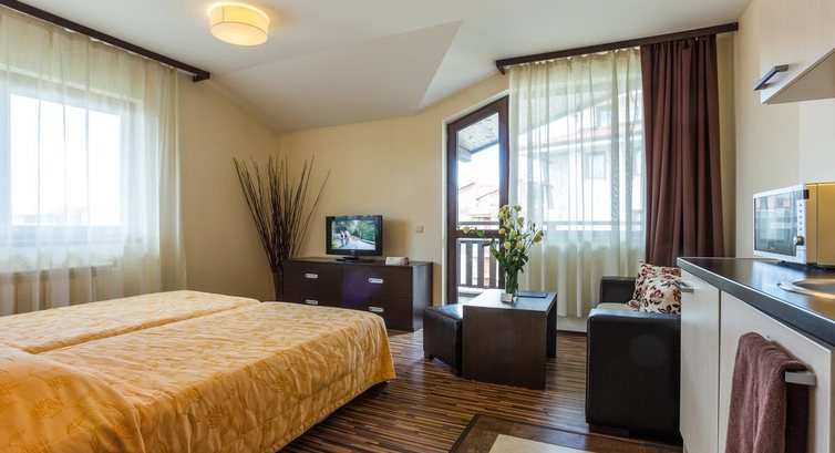 Чотирьохзірковий апарт-готель розташований в серці одного з найсучасніше обладнаних лижних курортів у Східній Європі - Банско. Готель прийняв своїх перших гостей у 2009 році. Складається з одного 4-поверхового будинку. Підійде до спокійного сімейного відпочинку.