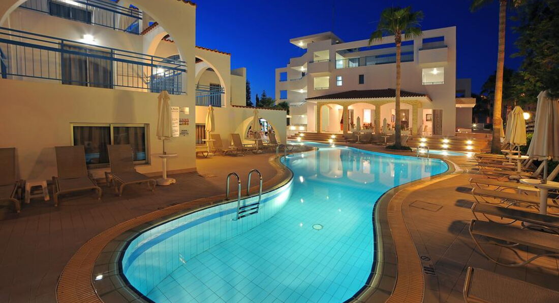 Затишний апарт-готель із невеликою територією. Розташований в безпосередній близькості від історичного та розважального центру Айя-Напи з його відомими дискотеками, барами та ресторанами. Просторі номери з повністю обладнаною міні-кухнею. Відмінний варіант для сімейного та молодіжного відпочинку.