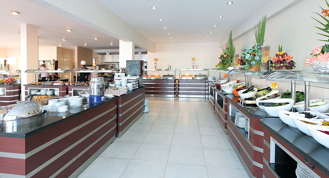 Бари та ресторани: головний ресторан розрахований на 450 осіб (критий, літня тераса, дитяче меню, дієтичне меню, дитячі стільці), лобі-бар (10:00-23:00), бар біля басейну (10:00-23:00) ). Ресторан A la Carte – платно за попередньою резервацією.
