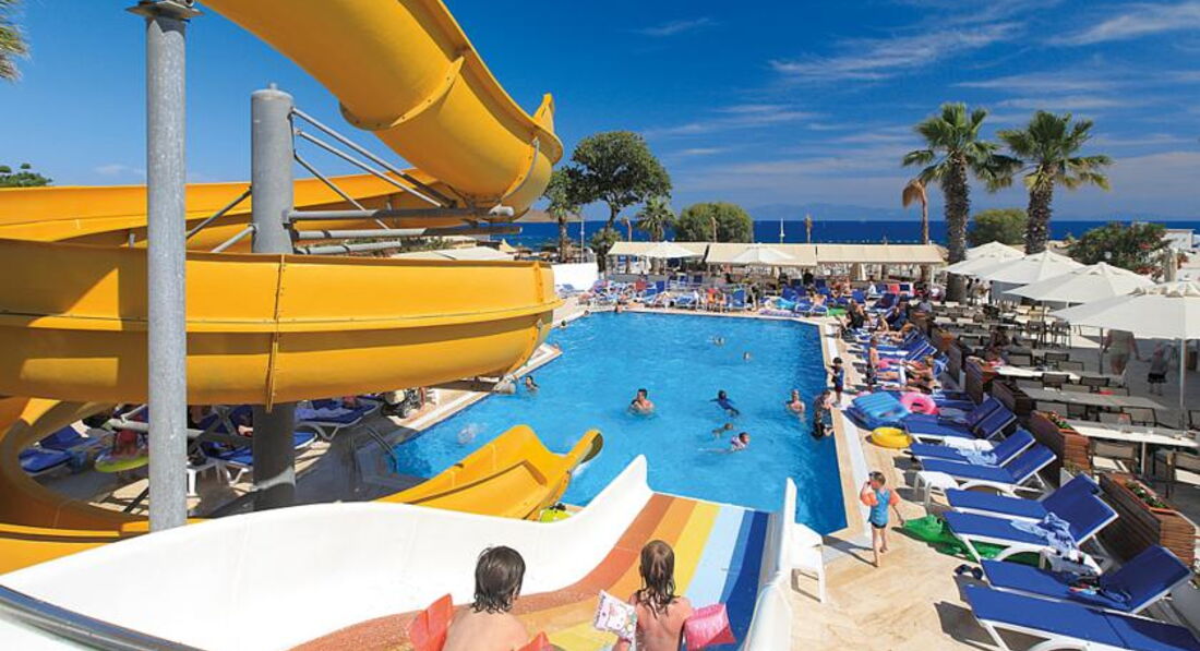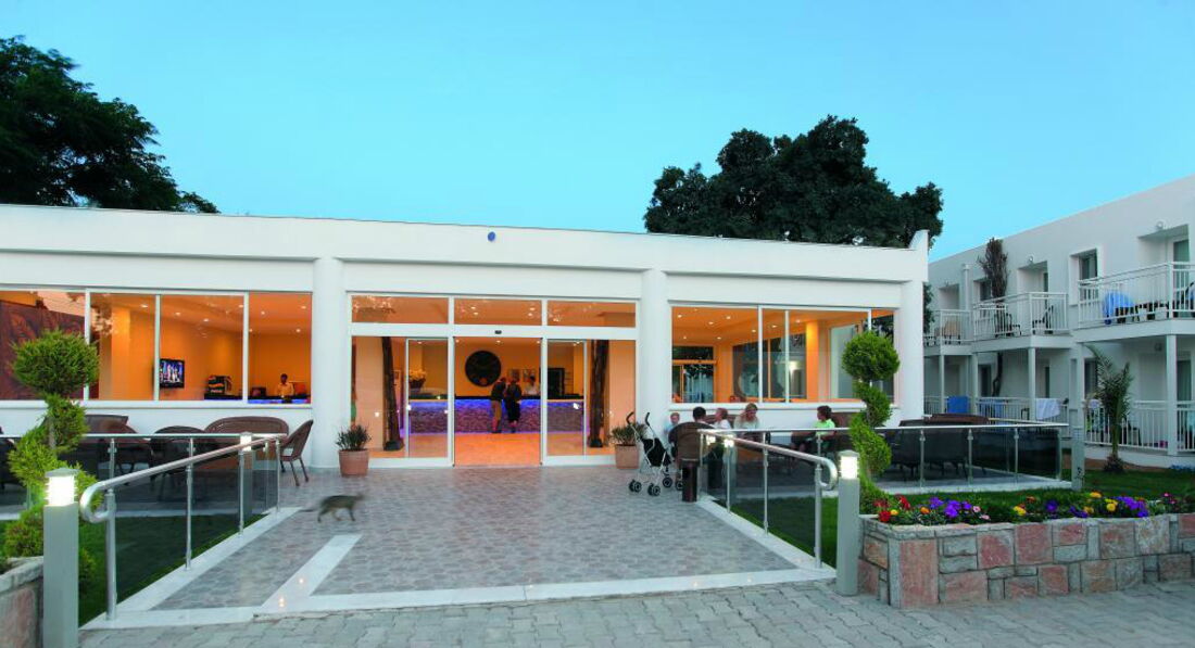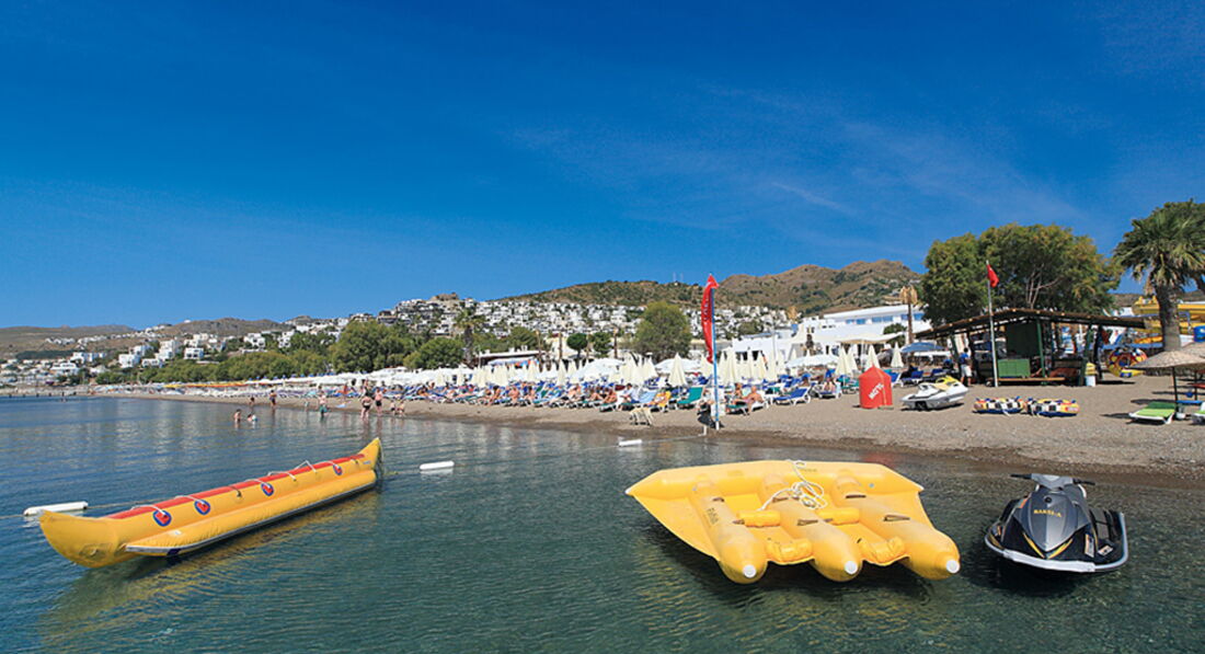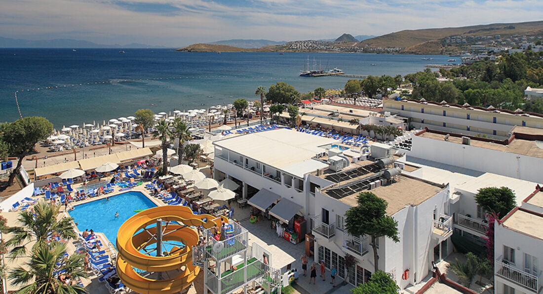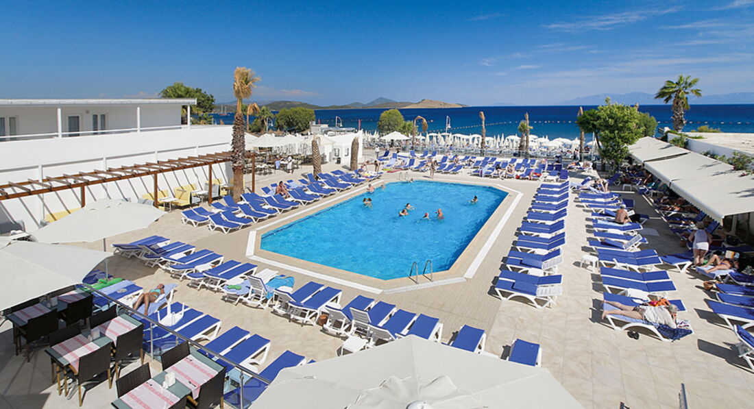 Отель в целом неплохой, есть свои плюсы и минусы! Отдыхали с подругой и Ее ребёнком с 03.06-13.06! Два дня потеряли, так как сутки добирались первый день приехали уже была ночь, и уезжали обратно в три ночи, тупо сгорели два дня, летали туроператором SanMar! По приезду в отель нам не предложили ужина или сухого пайка, по отъезду мы попросили сухой паёк, дали бутерброд он был- никакой! По отзывам читали что мало русских, ничего подобного отель был забит русскими... Сразу скажу отель на 4 звезды не тянет: анимации никакой в отеле нет, ходят 5 человек турков ни один не понимает на русском, такое чувство что просто отдыхают, чёт там на своём перед обедом поболтают и всё, для детей ничего не было, кроме вечерней дискотеки которая была из 4 песен, для взрослых было из 10 дней отдыха- 4 раза анимация из приезжих по 15 минут (танец живота, караоке и шоу с огнём, и микс танцев). Еда в отеле, разнообразия большого не было, курица и все, рыба была вкусная была раза 4, из фруктов были каждый день яблоки и апельсины, и по вечерам только радовали арбузами, чему мы крайне радовались, было разрешено выносить еду в номера, но особо выносить и нечего было, конечно мы не были голодны все эти дни! Территория отеля компактная, ухоженная, чистая, вся в цветах и растениях, изначально кажется что места много! Пляж близко, чистый, песок и галька, дают полотенца, с лежаками проблем нет, Эгейское море бодрящее, чистейшее, местные жители говорят и в августе оно бодрит, на пляже бара нет, но можно носить из отеля! Три бассейна: один центральный, второй с горками, третий совсем для карапузов. Отдельно хочу сказать про персонал отеля, в принципе народ доброжелательный, улыбчивый, но мало кто понимает на русском, есть один кто понимает на русском звали его Орхан, он видимо этим и выделялся, со всеми знакомился, просил чаевые, те кто давали облизывал их и подносил им все, те кто не давали чаевые и хотели получить от заявленного отеля «аll inclusive» были у него на контроле, он контролировал, что ты пьёшь и кто тебе наливает, в баре постоянно не было виски, за Коктейль Мохито просили 5 $, когда попросили прайс на коктейли, его не нашлось! Так же хочу заметить, что Орхан неуважительно и некорректно вёл себя с русскими девушками, унижал, мог наорать, или просто послать куда подальше! В целом отдых не плохой, Бодрум очень понравился, отель так себе, один плюс на первой береговой линии и что порадовало мороженное которое давали детям в неограниченном количестве.