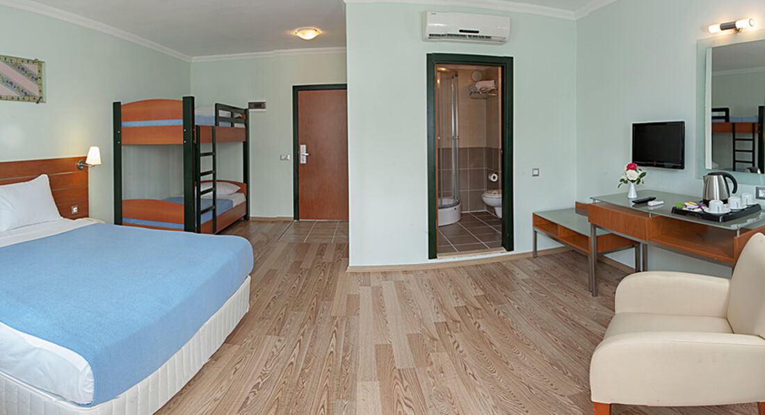 Отдохнув, ближе к обеду мы пришли на ресепшн спросить про номер Family, на что получили ответ,что таких номеров в отеле нет в принципе. Вечером мы пришли туда с распечаткой описания всех номеров отеля, взятых с сайта Пегаса, и сказали что нам дали номер «large room with bunkbed”, а мы бронировали family, на что получили тот же ответ. Третий раз мы пошли туда уже с гидом Пегаса, но ответ был тот же самый. Самое интересное - на пляже мы познакомились с семьей, проживающей именно в таком номере. Но дальше разбираться и портить отдых уже не стали.