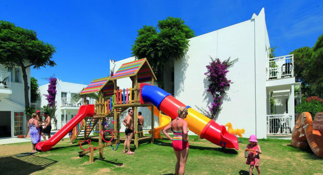 Мы ездили без детей, но напишу для тех кто едет с детьми. В общем я думаю детям там рай. Это взрослые видят недостатки, а дети видят море, солнце, бассейны теплые, и горку водную, детские площадки в тени неплохие и детские аниматоры, вечером детская дискотека. Это взрослые не знают английский или турецкий а дети между собой отлично все понимают резвятся и играют. Думаю детям там очень хорошо. Отель семейный и молодежный много молодежи.