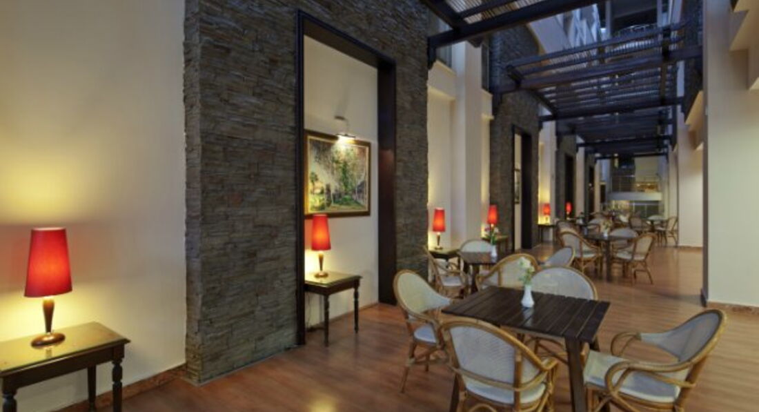 Отдыхали с подругой в конце апреля начале мая, это была наша первая поездка в Турцию) отель безусловно понравился, еда разнообразная, сейф бесплатный, вай-фай в номере и внутри отеля бесплатный. Вкусное пиво Коктели однообразные, ну можно доплатить и сделают коктель импортный. До центра недалёко, персонал вежливый, не приставучие. Голодными там точно не останетесь,ну вот музыка не очень. В соседнем отеле играли все хиты и на полную катушку. Недалёко клубы, аура инферно.15 минут пешком. Заселили сразу, сначала нас отправили покушать. На пляже лежаков всем хватало, так же и около бассейна) я бы поехала ещё в этот отель) все чисто, аккуратно) спасибо за приём)