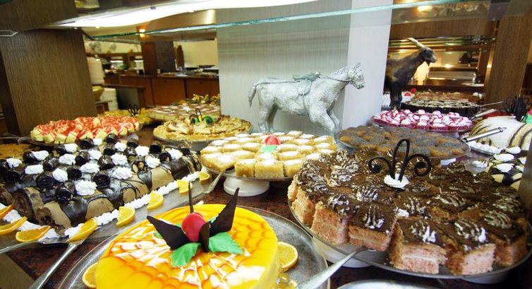 В холле отеля есть зал, где можно целый день есть пирожные, тортики . А в 16 ч. мороженое дают.