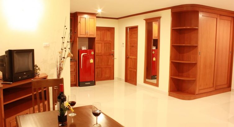 Отдыхали в январе 2016 г с попутчицей из другого города(как выяснилось позже с землячкой). Прилетели 8.01.2016,ооочень долго проторчали в аэропорту Паттайи(длинный поток очереди на паспортном контроле). До отеля доехали часа за полтора,время было где-то три часа дня,нас быстро поселили. Сперва попали в номер 309 с одной большой кроватью,объяснили персоналу что мы не в паре,и нам дали номер 409 с двумя раздельными кроватями. Это третий этаж. Номер хороший просторный,чистый аккуратный,с маленькой кухней в коридоре(кухонные тумбочки,холодильник,раковина - очень удобно если ванна занята,то есть где умыть руки и почистить зубы). Ванная комната также чистая аккуратная - раковина с длинным столиком,унитаз и огромная душевая кабина. В номере также телек,прикроватные тумбочки,шкаф-купе,внутри которого спрятан сейф. Ценные вещи хранили как в сейфе,так и ныкали по потаённым местам - ничего не пропадало. Так же огромный балкон со столиком и стульями. Насёкомых у нас никаких не было,ибо в номере мы не кушали,и если была какая то еда,то хранили в холодильнике. Фрукты ели на первом этаже,ножи и тарелки там предоставляют без проблем. Также вечерами пили чай,кипяток просите-наливают. На обедах и ужинах сэкономили - набрали из дома мюсли,чай,печеньки к чаю. Брали в маркете "севен елевен" йогурт,потом в отеле брали тарелки,заливали мюсли йогуртом,заваривали чай,пакетиками чая также угощал работников отеля. Но периодически обедали или ужинали в кафешках на улочке рядом с отелем. Остатки чая,мюсли и печенек вручил двум парням-работникам отеля,чему они очень обрадовались.
