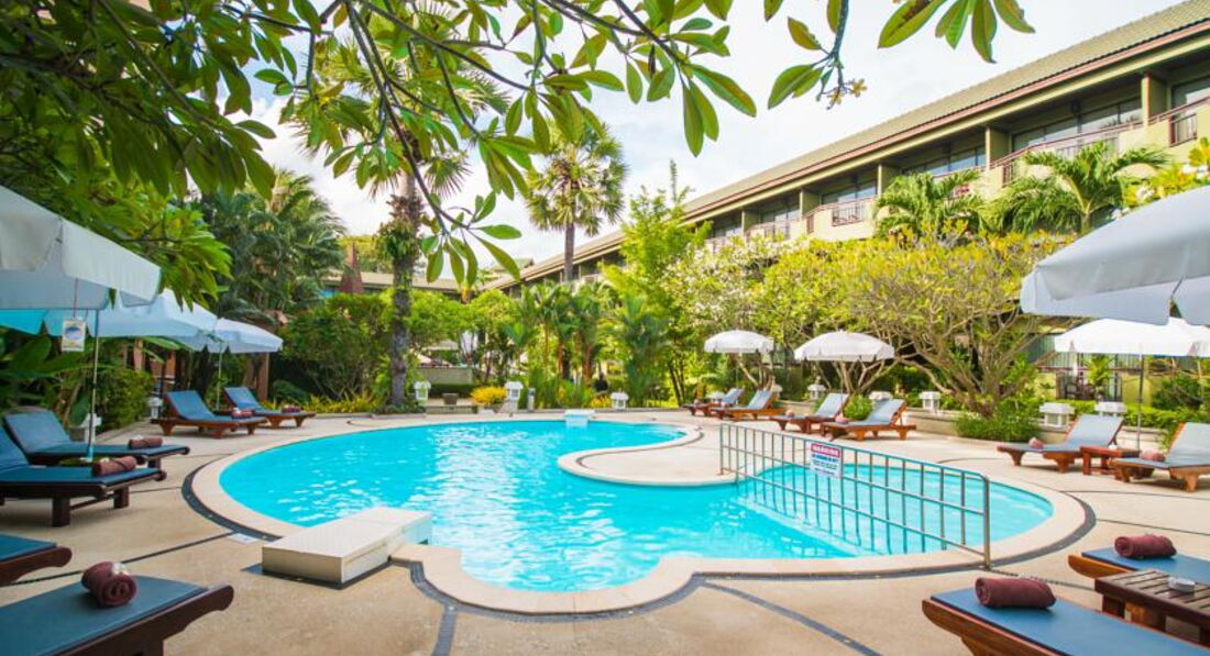 Отель очень старенький, все такое обшарпанное, но чистенький, очень зеленый, еда на завтрак хорошая, а главное преимущество - находится рядом с морем через дорогу. Но рекомендовать его для троих взрослых в один номер не стоит, там во всех, даже в улучшенных, номерах только две кровати и маленькая кушетка, на которой поместится только ребенок до 10 лет. Тайцы учудили - убрали с пляжа все лежаки и зонтики (со всех пляжей), так народ теперь ютится под деревьями и кустами, где они есть. Благо у нас отель рядом, мы искупаемся и на лежаки к бассейну, а под деревьями и кустами очень грязно, никто не убирает. И в поразила грязь на пляжах, такое впечатление, что там никто вообще не убирает.