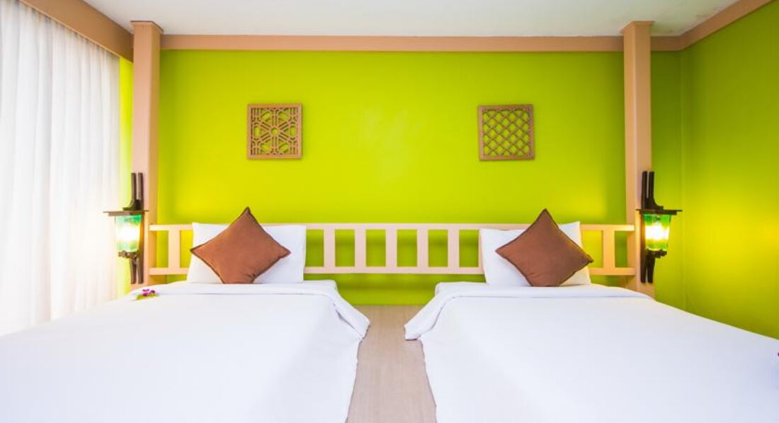 Отель зеленый, уютный, не знаю, может повезло, но несмотря на то, что было много людей, было спокойно. Отель очень удачно расположен -пляж через дорогу, рядом много кафешек, массажных салонов, недалеко Севен Элевен (идти от отеля направо на перекрестке направо, на следующем перекрестке налево. Кафешки все неплохие, особенно нам понравилось два - первое справа от отеля, его открыли уже когда мы были, и, если идти налево - предпоследнее в ряду. Ценник средний 600 -800 бат, один раз ходили в ресторан "Дино" (от отеля налево, в горку) там за ужин отдали 1500. Иногда ходили обедать к Севен Элевен к макашницам, они приезжают после трех, там очень сытно и вкусно поесть можно за 250-300 батт. Несмотря на кажущуюся антисанитарию, все было отлично.