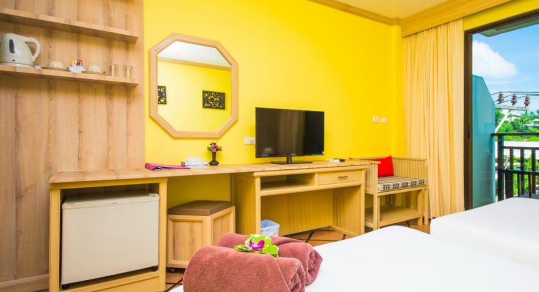 В номере есть чайник, чай -кофе, чашки. Переходник для техники не требуется. В шкафу два зонтика на случай дождя. Очень хорошая уборка, убирали каждый день на совесть,как только заканчивались мыло -гель, шампунь, сразу пополняли. Мы каждый день оставляли 15-20 бат, за такую уборку не жалко.