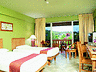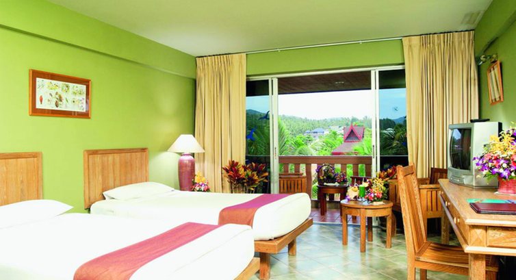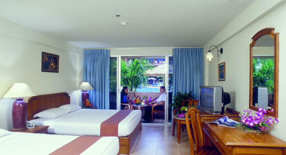 Нас заселили в 13.45, номер подошел сразу же. С видом на горки. Если открывать балконную дверь, то шумновато. Но в условиях такой жары, спали мы с кондиционером. Он шумел, но не настолько, чтобы мешать. Работал хорошо. Первые минуты после включения немного пахло оттуда сыростью. Потом запах пропадал. В номере есть все необходимое для комфортного отдыха, но не стоит забывать, что отель старый. Дверь в ванную у нас ужасно скрипела, просили смазать, но под конец отдыха привыкли. Сантехника работала,не текла. Немного напрягал запах канализации в ванной. Но мы поняли, что это во многих отелях. В спальне не пахло. Мебель пошарпанная, кровать не скрипела, матрас удобный. Белье постельное без дыр и пятен, полотенца тоже. WiFi в номер мы не подключали, пользовались 3g на местной симкарте. У нас с ней проблем не было, у соседей она так и не заработала. К гиду подошли, попросили поменять. Он сказал, что другой симки у него нет. Хотя тем, кто купил экскурсии он дал 2 на семью. Мелочь, а неприятно. Поэтому приходили к нам звониться. Интернет есть на ресепшн, но очень медленный. Телевизором мы не пользовались (даже дома его не смотрю), поэтому даже не скажу про русские каналы, вроде были. Территория отеля небольшая, но ухоженная. Очень много декора, различных растений. Все подстригается, убирается, сухие листья обрезаются. Персонал в отеле очень милый и доброжелательный, когда мы проходили мимо — всегда здоровались и даже немного кланялись. Меня это по началу даже напрягало, очень неудобно себя чувствуешь, когда женщина старше тебя прямо приседает... Потом на экскурсии гид нам рассказал, что так у них тут принято. Возле бассейна много шезлонгов, они практически новые. Всем места хватало. Горки хорошие, очень спасают родителей с детками. На море купаться не очень безопасно, так дети хоть в бассейне резвятся. Расположение отеля хорошее, хоть и не на первой линии. До пляжа идти 5 минут, жалко, что через дорогу не организован нормальный переход. Приходится перебегать. Рядом с отелем куча кафе, обменники, палатки с шашлычками и фруктами, массажные салоны, супермаркет. Ночной жизни на Кароне нет, тем, кто она нужна советую ехать сразу на Патонг. Там все клубы и дискотеки.
