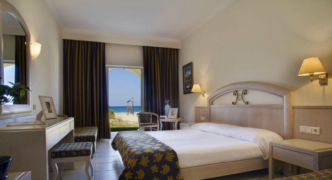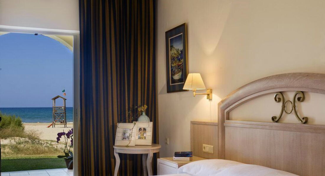 junior suite beach front (об'єднані спальня та вітальня, основне ліжко – двоспальне (king-size), додаткове – софа або розкладне ліжко, мармурова ванна з джакузі та/або душовою кабіною з гідромасажем, обладнана тераса з натурального дерева з лежаками, номери розташовані на 1 поверсі, на пляжі готелю, максимум 4 особи, 34 м2);