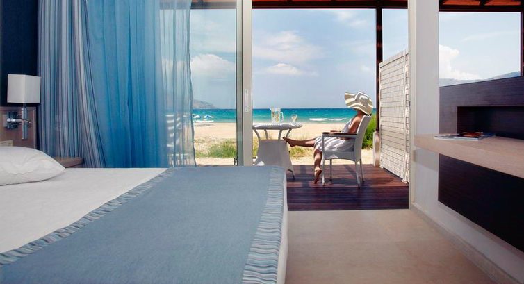suite beach front (спальня, вітальня з дверима, двоспальне ліжко (king-size) у спальні та додаткові – софа або розкладне ліжко у вітальні, мармурова ванна з джакузі та/або душовою кабіною з гідромасажем, обладнана тераса з натурального дерева, розташовані на 1 поверсі, на пляжі готелю, максимум 4 особи, 34 м2);