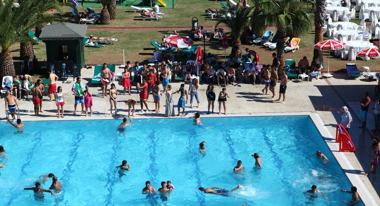 Отдыхали в основном турки, украинцы, англичане, европейцы. Возраст колебался от молодежи до пенсионного, были и с маленькими детками тоже. Так что заезд на заезд не приходится.