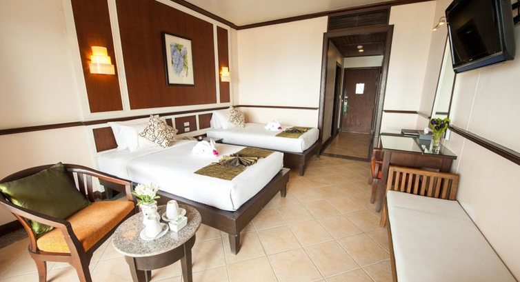Здравствуйте! Отдыхали с женой в Таиланде впервые, выбрали именно этот отель по отзывам и фото. Долетели прекрасно, встретились с сопровождающим и примерно через минут 40 были в отеле. Заселили сразу. Номер предоставили в трех этажном корпусе. Номер просторный, чистый, светлый, с хорошим ремонтом, неплохо обставлен. Большая двухспальная кровать, вместительный шкаф, тихий кондиционер, фен, электрическийчайник, тв, сейф. Балкон небольшой, с мебелью. В ванной неплохая сантехника, есть все необходимые пренадлежности, полотенца, которые ежедневно меняют. Уборка нормальная. Постели меняли раза два за неделю. Ежедневно пополняют воду. Персонал отличный, все приветливы, легко идут на контакт, с удовольствием помогут и подскажут. В наш тур включены были завтраки - сытные и вкусные. Обязательно присутствовали на столе несколько видов супов, гарниры, колбаса, омлет, овощи, выпечка, йогурты, фрукты, напитки. Ужинали мы всю неделю в различных кафе неподалёку от пляжа, в каждом удавалось попробовать что-то новое, причём недорого. Территория у отеля действитльно чистая и ухоженная, много деревьев, растительность, даже пруд с рыбками имеется. Отель расположен на первой береговой линии, пляж широкий и протяжный, чистейший песок, вода изумительная!! Просто глаз радуется от такой красоты! Атмосфера в отеле уютная, домашняя, как-будто в гости приехал к родным. Бассейнов на территории отеля три, каждый по-своему хорош, но людей, особенно под вечер много и лежаки найти трудно. Экскурсия у нас была включена в тур. Ездили на крокодилью ферму, удалось посмотреть потрясающее шоу, где крокодилам в пасть ложат дрессировшики то руку, то голову. Понравилось однозначно! Сад тысячелетних камней и мини-зоопарк тоже интересно посмотреть. Отель абсолютно оправдывает цену и свои три звезды. Понравилось, думаю, стоит вернуться! За обалденную организацию отдыха благодарны ТПГ, ребята старались.