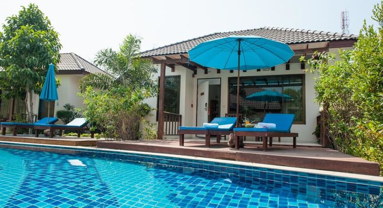 Вилла хоть и не большая, но нам в принципе всё понравилось, здесь не было излишнего шика, зато было все, что нужно для спокойного отдыха. Вилла состоит из комнаты с большими панорамными окнами с видом на бассейн, не большого гардероба и ванной комнаты с душем и туалетом. В комнате находится большая двуспальная кровать, телевизор, гостиный уголок, холодильник, в гардеробной есть маленький сейф, в ванной комнате халаты, тапочки, фен, туалетные принадлежности. Выход из виллы прямо к бассейну, на улице есть не большая приватная зона с двумя лежаками и зонтиком. Виллы стоят друг на против друга, а между ними бассейн. Купались когда угодно и сколько угодно, ни кто не мешал т.к. большую часть времени ближайшие домики не были заселены, было очень тихо и спокойно, в бассейне ни кого, накупались вдоволь! В доме убирались хорошо и регулярно, мы оставляли не большие чаевые по 20-40 бат.