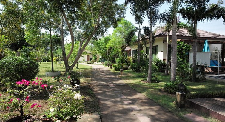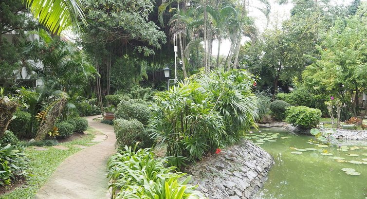 Впечатлила - размах, зелень. На территории большой сад. Отель состоит из корпусов разной этажности (11 трех- и шестиэтажных корпусов Standard Building, пятиэтажный корпус Deluxe Building, 2 трехэтажных корпуса Economy Building) и комплекса одноэтажных бунгало,есть три бассейна.