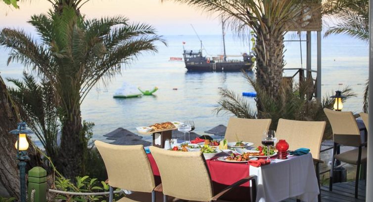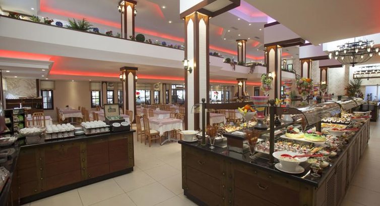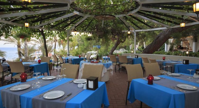 Бари та ресторани: головний ресторан розрахований на 550 осіб (критий з кондиціонером та літньою терасою, дитяче меню, дитячі крісла, дієтичне меню), лобі-бар, бар біля басейну, диско-бар, вітамін-бар, пірат-бар, снек- бар, 3 ресторани A la Carte: турецький, рибний, барбекю – безкоштовні 6 разів на тиждень, за попередньою резервацією столика. Усі бари безкоштовні.
