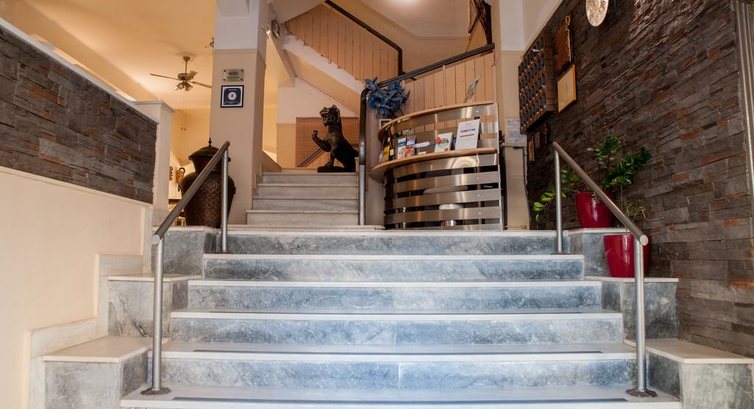 Розташування: у центрі міста Лутраки, за 100 км від міжнародного аеропорту «Ел. Венізелос» м. Афіни, за 84 км від Афін, за 120 км від м. Патра.