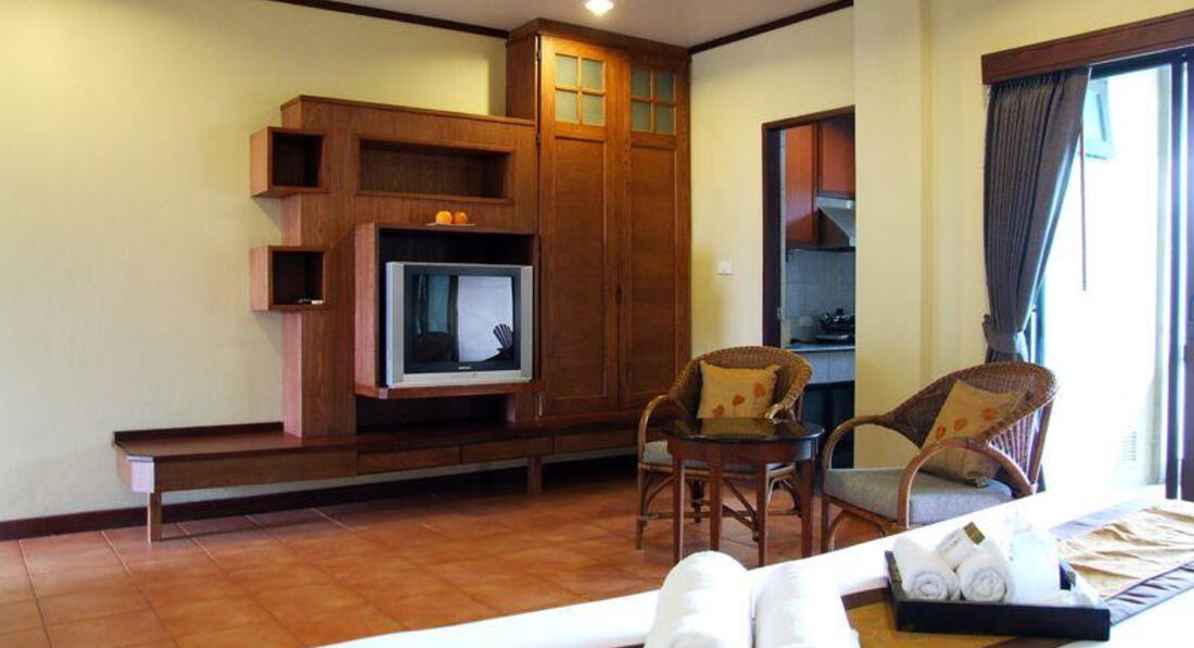 Славу Бога мы купили номер в корпусе В (60кв м), хотя при заселении нас чуть не повели в номер корпуса А, но сам таец опомнился, и исправил на нашем талоне А на В. Номер не смахивает на 60 кв м (двухкомнатная квартира 50 кв в России у нас больше почему то казалась, чем эта «однушка»). Из плюсов: Кухня за отдельной дверью, даже если готовишь запахи в основную комнату не шли. Кухня чистая, каплей жира нет. Посуда неколотая, были кружки, тарелки, вилки, ложки, нож, доска. В номере 2 холодильника, чайник, микроволновка, электр.плита (из 2х комфорок работала одна), телевизор с 2 русскими каналами (НТВ, Первый). Большой балкон. Кондиционер тихий,вообще не слышен. Батарейки в пульте не работали,нам поменяли. В номере 2 больших шкафа с огромным количеством вешалок! Также множество полочек, тумбочек. На окне маскитная сетка. Двери также во всю ширину натянуты сеткой. Очень удобно! Ванная чистая, грибка нет. В общем, у нас все было идеально.