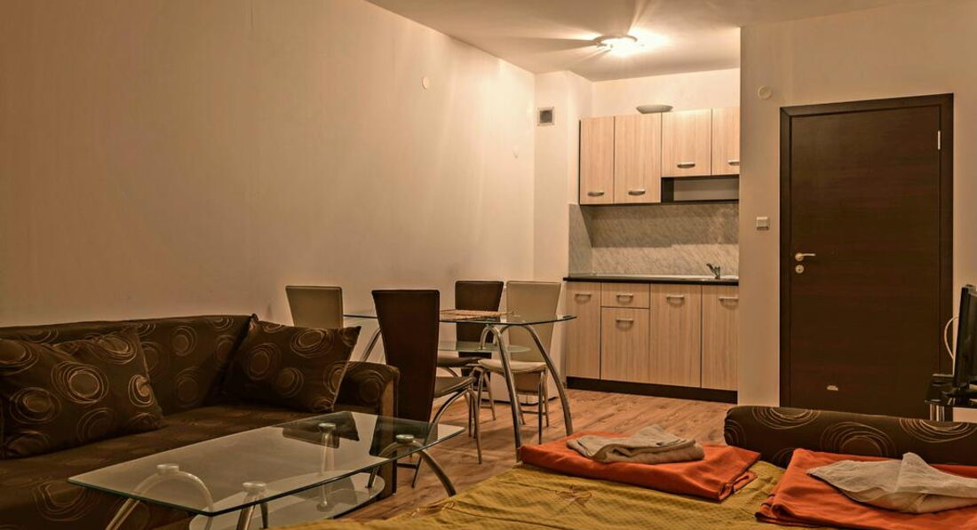 Це житловий готельний комплекс люкс, що знаходиться в прекрасному лижному курорті Банско, не більше ніж за 80 метрів від гірськолижного витягу. Побудований на площі 1919 кв.м, комплекс включає велику різноманітність номерів, які оформлені за вищим стандартом, щоб забезпечити зручність та функціональність цілий рік.