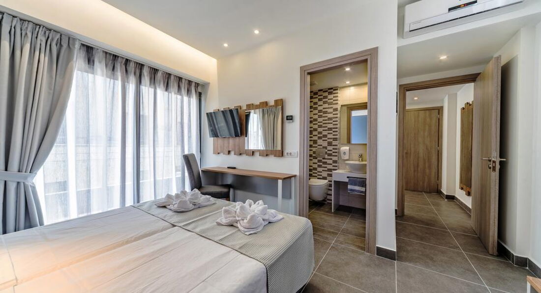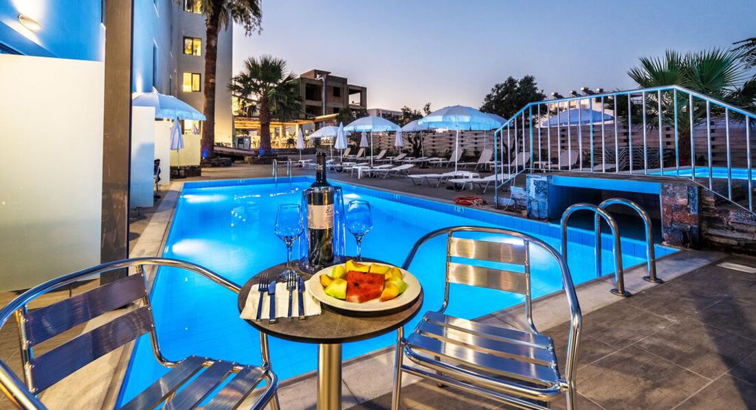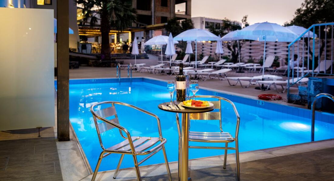 Розташування: за 27 км на схід від аеропорту м. Іракліон, за 350 м від курортного міста Херсоніссос.