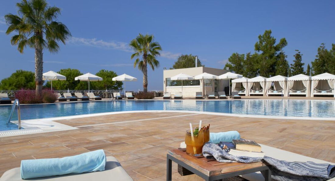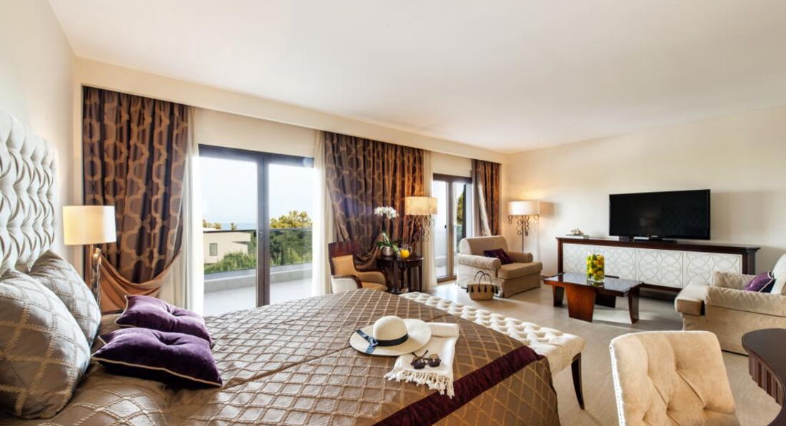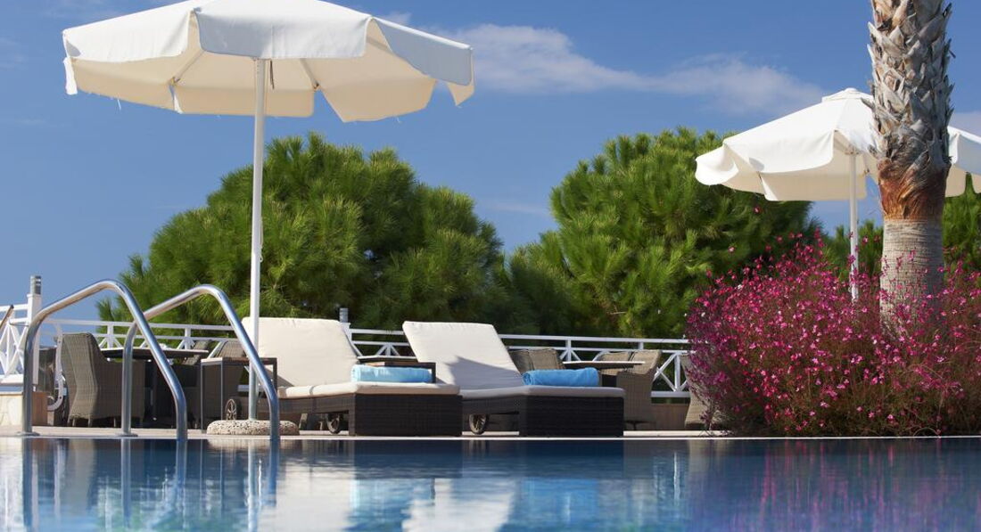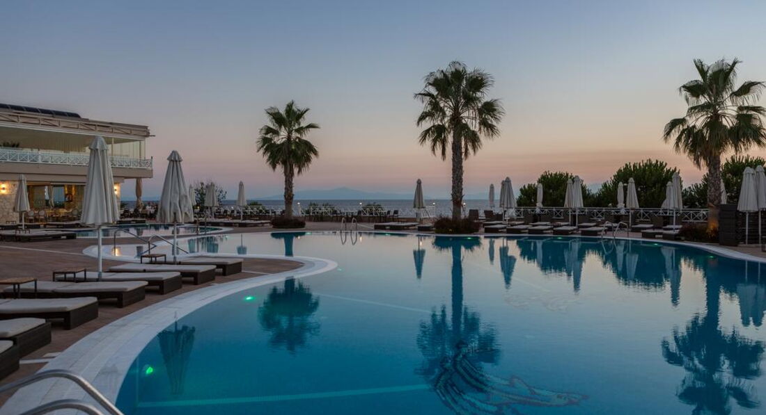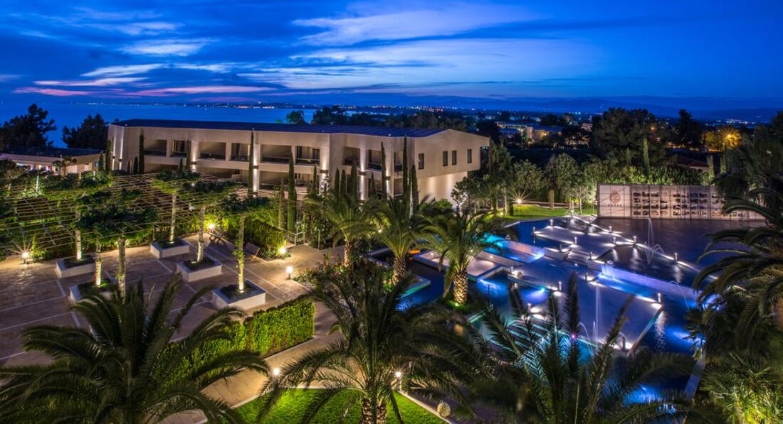 Стильний готельний комплекс із просторою зеленою територією. Різноманітний номерний фонд. Розвинута інфраструктура. Унікальний SPA-центр площею 1900 м2 є одним з найкращих у Греції, пропонує гостям широкий спектр послуг з догляду за обличчям та тілом. Нічний клуб на території готелю.