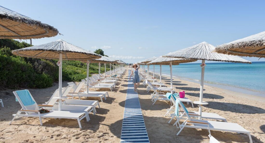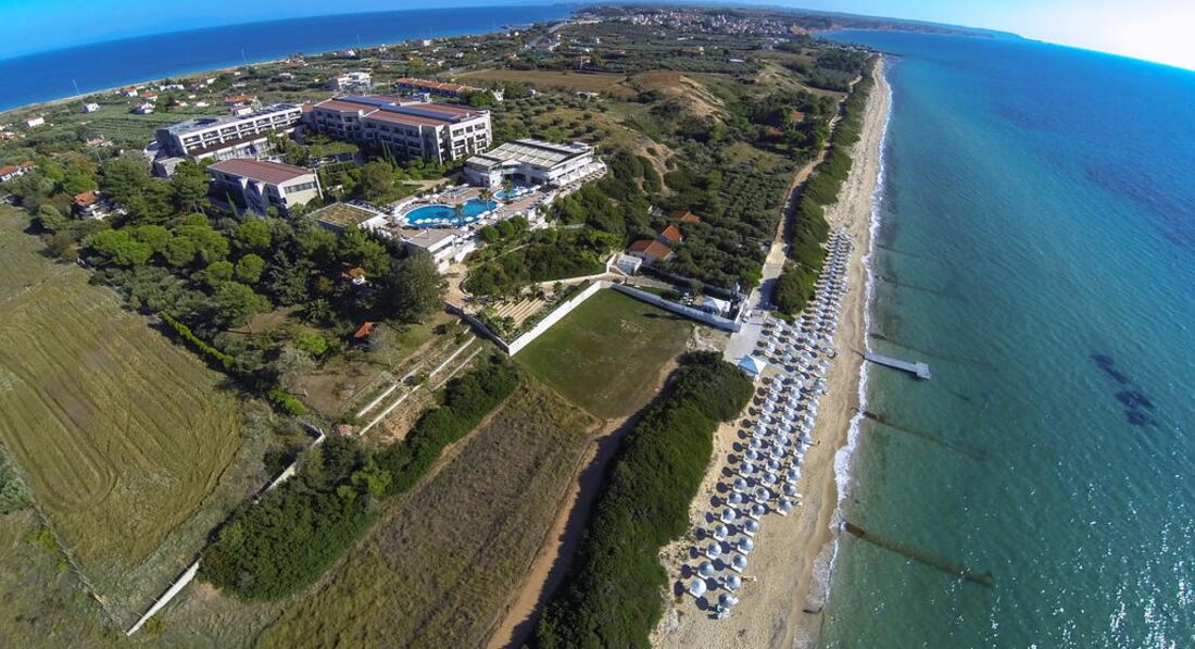 Розташування: на узбережжі п-ва Кассандра, за 5 км від Неа Муданья, за 55 км від аеропорту.