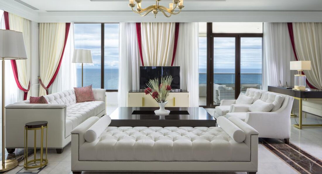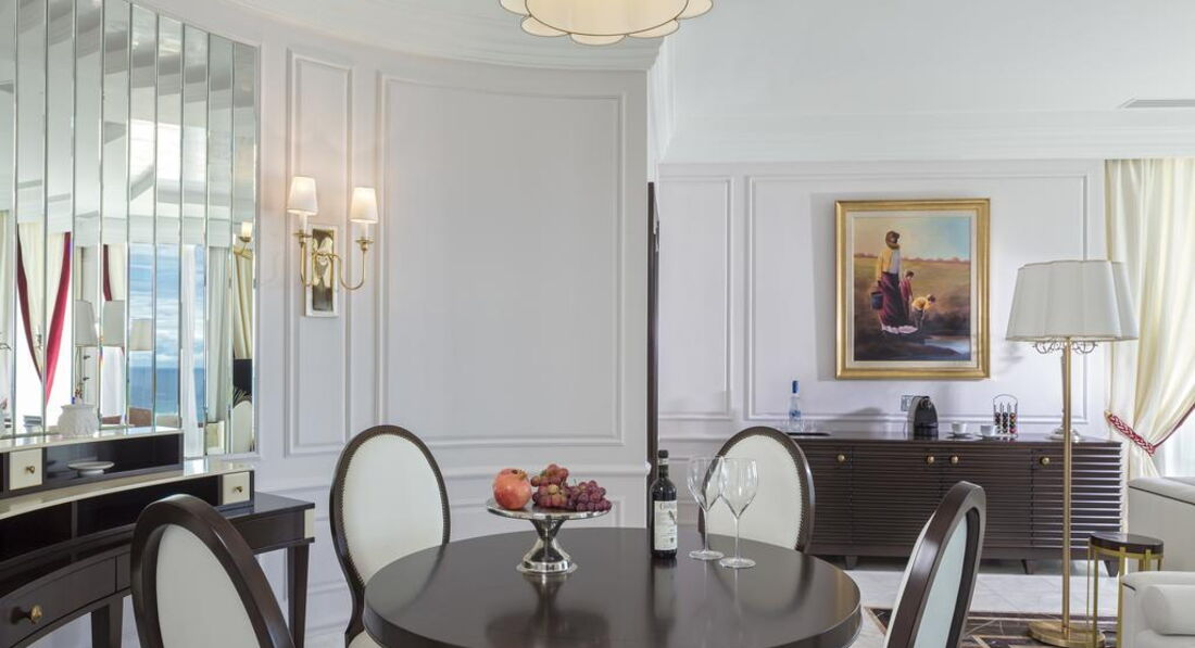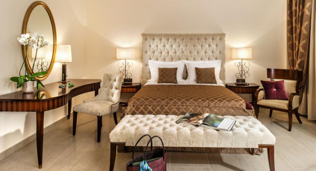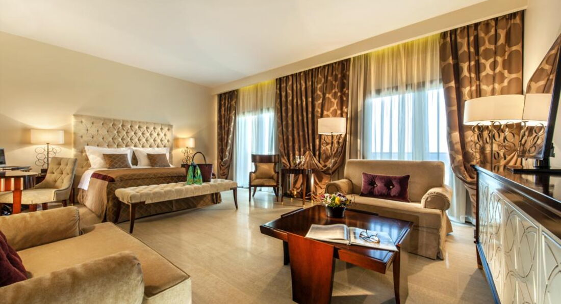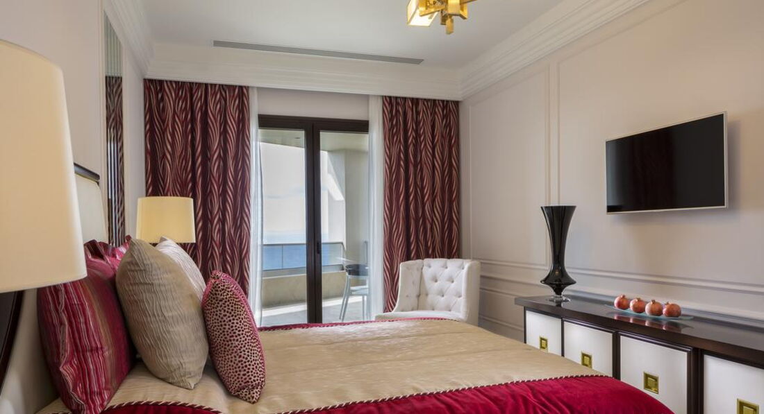 Family suite (2 окремі спальні, вітальня з обідньою зоною, 2 ванні кімнати, осн. ліжко – queen size ліжко, дод. – 2 односпальні та софа, макс. 4+1 чол., 81 м2); Tokyo suite (однокімнатний люкс для молодят, спальня з вітальнею, осн. ліжко – superior king-size ліжко, макс. 2 чол., 61 м2); Ludovicus suite (спальня та вітальня з розсувними дверима, вбиральня, осн. ліжко – двоспальне, дод. – софа, макс. 2+1 чол., 60 м2); New York suite (2 окремі спальні, вітальня, 2 ванні кімнати, осн. ліжко – king-size ліжко, дод. – king-size ліжко та софа, макс. 4+1 чол., 103 м2); Pomegranate suite (спальня та вітальня з дверима, офісна зона, осн. ліжко – двоспальне, дод. – софа, макс. 3 чол., 106 м2); Presidential suite (2 спальні, вітальня, їдальня, 2 ванні кімнати, осн. ліжко – двоспальне, дод. – 2 односпальні або двоспальне, макс. 4 чол., 160 м2); Moscow suite (2 спальні, вітальня, їдальня, особистий кабінет, 3 ванні кімнати, приватний ліфт, осн. ліжко – king-size ліжко, дод. – king-size ліжко, макс. 4 чол., 167 м2). Є номери для людей з обмеженими можливостями.У номері: набір для приготування чаю/кави сейф: у номері, безкоштовно (електронний) зміна білизни: щодня кавоварка (Nespresso) кондиціонер: центральний (з індивідуальним контролем) банні приналежності зміна рушників: щодня (2 рази на день) CD/DVD-програвач телефон підлога: керамічна плитка (або мармур) прибирання номера: 2 рази на день капці фен: є балкон або тераса міні-бар платно вибір подушок ТБ: супутникове Інтернет: Wi-Fi, безкоштовно халат ванна або душ