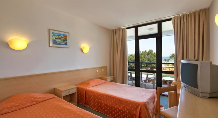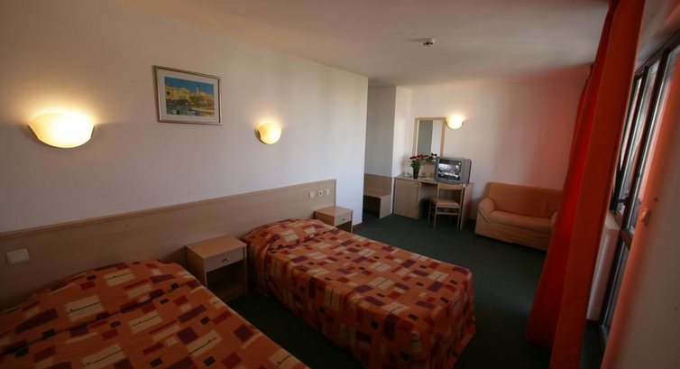 мы с подружкой приехали 3 августа на 2 недели.. я знала что кондиционера нет и знала куда я еду, то есть в 3 звезды.. Заселили сразу но кормить в обед отказались.. мы так и не поняли почему.не стали разбираться пошли и покушали на улице.. Утром я была на завтраке в шоке.. колбаса яички и все....кофе холодный перестала ходить на заватраки. В обед та же самая картина ничего нет выбора нети.. фрукты на одной тарелочке при чем отель то не маленький.. арбузы гнилые.. в том году в испании я отдыхала в 3 но нас кормили на убой как в турции . Поселили нас на 4 этаж в последний корпус пешком туда и сюда ходить гудели ноги. лифт рабьортает только в главном корпусе.А что самое интеесное побежав на бар который возле бассейна- он оказался платным. первые дни незаметно когда есть деньги. Там работают 2 бармена Иван и Винилин. Иван хороший длобьрый а тот целыми длнями только выкрикивает ой бля....ь, ему нравится русские маты-хамло настоящее. Хорошо тем что диско самое классное находитсч через дорогу.. а нам это и нужно было каждый день тусили. мне очень понравилось. Если вы не замужем и тд то вам как раз туда)))Одно поняла еще о болгарии брать нужно хорошую 4 и только с завтраком так как действительно там в ресторанах все стоит копейки а порции огроменные. Рекомендую взять феникс он стоит разу возле помория -хозяин один и тоттже но он поцивильней.