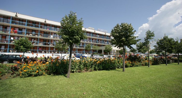 Ездили в августе 2010 году с молодым и человеком и двумя подругами.Перовое что хочу сказать что отель больше подходит для молодежи,чем для семейного отдыха.об этом напишу позже.Жить можно.тройка она и есть тройка на большее не тянет никак.Лично мне напомнил санаторий где-нибудь в МО.Мебель не супер новая.У нас с молодым человеком были две раздельные кровати,но нам разрешили их соединить.Мы бронировали большие два номера еще в Москве.По приезду нас встретили.разместили.рассказали что и как. вообщем все как следует. Нам помогала гид Таня.Приятная женщина.Поселили нас прямо около столовой.(рестораном не назову)Честно говоря была не в восторге от этого расположения, так как это вечный гул и шум, особенно утром когда Вся толпа идет принимать пищу..Моим подругам вдвойне не повезло - окна выходили на мусорку (тоесть о красивом виде можно было и не мечтать) частично и у нас окна выходили на этот Интересный вид. Соседи попались безумно шумные с одной стороны компания молодых людей, которые ночью спать не собирались,а занимались прослушиванием музыки на всю громкость С другой стороны кто-то просматривал телевизор так же на всю громкость.Так что ночь без сна. На следующий день решили попросить другие номера.В итоге нас переселили с видом на море ,но уже в маленькие номера,так как больших не оказалось.Мы были собственно не против, красивый вид на море нас успокоил.Мы люди не привередливые,но номер был маленький с уютным балкончиком,где периодически мы собирались и обсуждали планы на день)Бассейн был не плохой.Бар у бассейна платный.лежаки вечно заняты с 7утра.не представляю во сколько люди вставали и занимали места.Порадовал момент- если на лежаке лежит зажигалка значит занято..Очень много Немцев и голых татуированных немок.До обеда давали закуски,если это можно так назвать сыр с хлебом или масло.булочки маленькие с джемом. Расходились быстро маленькие кусочки пиццы.целая очередь выстраивалась, получалось, что многие не успевали взять.Что касается еды, особого разнообразия не было.супы картошка фри котлеты арбузы, дыни морожное ,каждый день почти одно и тоже.Пиво было разбавленное.Но Бармены мальчишки: Мартин и к сожалению не помню как звали второго ,Просто молодцы,дружелюбные и всегда улыбались.