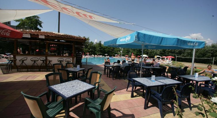 Питание - шведский стол, у кого проблемы с желудком тому придется тяжело, еда в основном со специями и слабо соленая. В столовой по недоразумению называемой рестораном введен дресс-код.На входе в ресторан на болгарском языке написано, что в пляжной одежде не пускают.На входе стоит пожилой болгарин который за этим делом наблюдает.Одна взрослая женщина с ребенком пыталась пройти, так её внешний вид чем-то этого болгарина не устроил и он пройти женщине не дал. Хотя другая женщина моложе и фигуристей в более открытом виде никаких вопросов у него не вызвала. Внимание диабетикам: Соки в ресторане и в барах производятся из смеси воды и порошка типа "Юпи", так что берегите здоровье. Лежаков возле бассейна мало, загорать туда приходят с ближайших отелей так что лежаков на всех не хватает. территория бассейна не огорожена. На пляже лежаки с зонтами платные лежак 7 левов-140 рублей, зонт 7-левов-140 рублей. В конце дня ездит машина и разравнивает песок, закапывая мусор и окурки в глубину. Вода в море мутная, много ила, водорослей и песка в воде. После дождя дождя к берегу прибило много медуз.