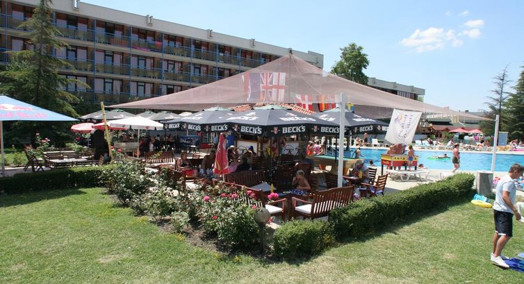 Питание и Бар. Питание на отлично выбор блюд не очень большой, но все вкусные и голодным точно не останешся, всегда есть мясные блюда, очень хорошего качества, овощные салаты, фрукты, пару тортиков. Напитки, как везде порошковые соки, Кола, Фанта, Спрайт, Швепс. Из напитков для взрослых нормальное пиво, отвратительное вино (позор конечно, для страны, где куча виноградников), и отличные крепкие напитки местного производства, высокого качества пьются приятно, голова не болит (Бренди, Водка, Ракия, Текила, Ром, Джин, Мастика). Бар "Всё включено" только в лобби, бармен отличный парень Венцеслав. Рядом с бассейном в перерывах между завтраком и ужином можно перекусить пиццей, бутербродами и мороженным. Вообще весь персонал очень приветливый и доброжелательный. В отеле очень много Англичан, как вообщем и на курорте, ведут себя отвратительно хуже, чем русккие, но надо отдать им должное всё между собой к другим не пристают.