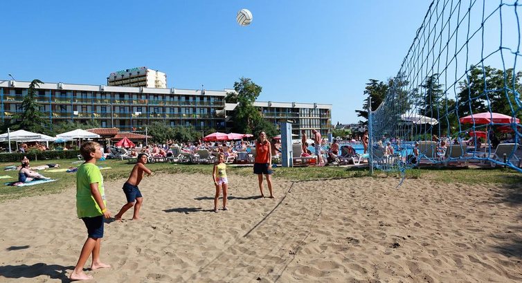 Лицо отеля -рецепция ужасна! Духота, темнота, диваны с виду дерматин, садишься как на деревянную лавку! Питание нигде такого в Болгарии не видела!Очередь в столовой(никак больше не назовешь) постоянная! На входе сидит молодой человек, зачем-то записывает номера комнат. Номера неплохие, убираются каждый день (спасибо горничной Дэньке). Бассейн большой, хороший, есть лягушатник. Кондиционеров нет, при открытом балконе спать невозможно, до 4-х утра музыка, пьяная молодежь орет, после 4-х птицы! Порадовали только молодые аниматоры, спасибо им за представления и др. развлечения. Море и пляж недалеко, через дорогу, лежаки и зонты как всегда платные -по 8 лев. Интернета бесплатного нет-предлагают покупать симку или в кафе с вай-фаем. Если у вас есть выбор, подберите что-нибудь получше. Повелись на цену и все включено, но скупой платит дважды!