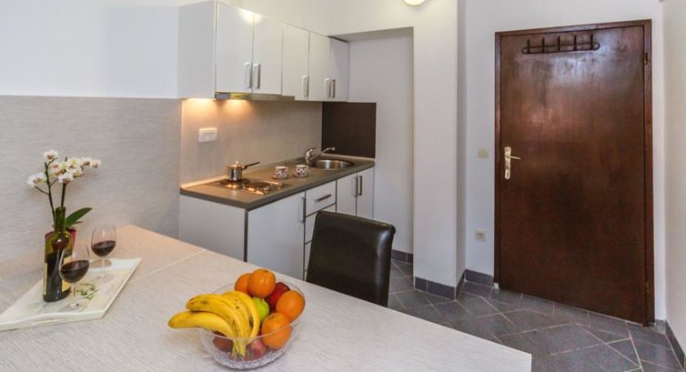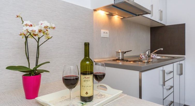 АРР 04 -1 bedroom: вітальня з розкладним диваном, спальна з французьким ліжком, повністю обладнана кухня, холодильник, супутникове ТБ, Wi-Fi інтернет, кондиціонер, санвузол з душовою кабіною, фен, тераса з видом на море. Максимальне розміщення – 4 особи.