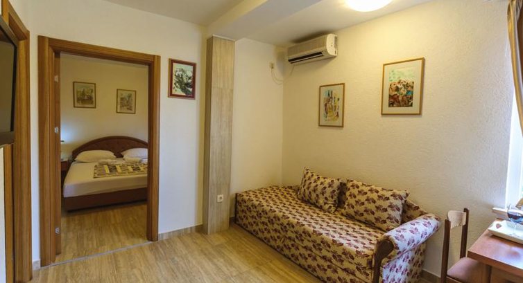АРР 06 - 2 bedrooms: вітальня з розкладним диваном, дві спальні з французьким ліжком, повністю обладнана кухня, холодильник, супутникове ТБ, Wi-Fi інтернет, кондиціонер, санвузол з душовою кабіною, фен, тераса з видом на море. Максимальне розміщення – 6 осіб.