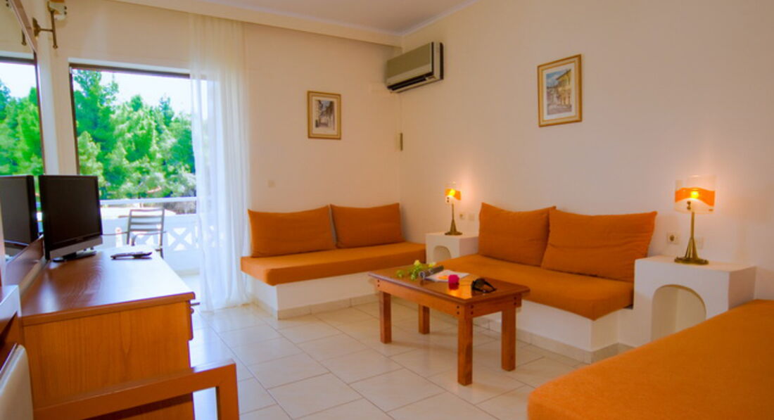 Типи номерів: Standard room (осн. ліжко - двоспальне або 2 односпальні, макс. 2 чол., 20 м2); Superior room (спальня з зоною вітальні, осн. ліжко - двоспальне або 2 односпальні, дод. - односпальне ліжко, макс. 3 чол., 25 м2); Familyroom superior (однокімнатний номер, осн. ліжко - двоспальне або 2 односпальні, дод. - односпальне ліжко або диван-ліжко, джакузі на балконі, макс. 3+1 чол., 30 м2); Family suite (2 спальні з дверима, осн. ліжко - двоспальне або 2 односпальні, дод. - 2 диван-ліжка, макс. 3 +1 чол., 47 м2); Junior suite (номер відкритого типу, спальня із зоною вітальні, осн. ліжко – двоспальне ліжко, доп. односпальне ліжко або диван - ліжко, макс. 3 чол., 40 м2);У номері: сейф: в номері, платно зміна білизни: 3 рази на тиждень кондиціонер: індивідуальний зміна рушників: 3 рази на тиждень телефон підлога: керамічна плитка прибирання номера: щоденно фен: є балкон або тераса міні холодильник ванна або душ телевізор: є
