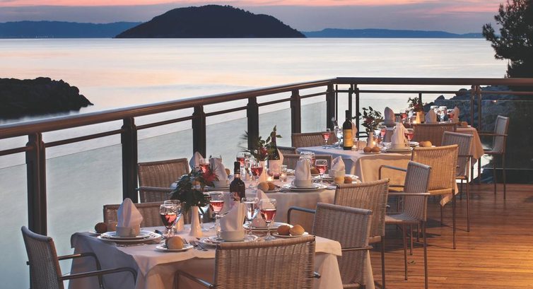 Питание. Мы отдыхали по системе ультра все включено. Кормили очень хорошо. Завтраки разнообразные, но как и во всех отелях изо дня в день повторяющиеся. Блинчики, ветчина, сыры, знаменитые греческие йогурты, свежие овощи, фрукты. Завтраки всегда только на открытой террасе с видом на стоянку яхт. Обеды сытные и разнообразные. Ужины просто праздник живота. Несколько сортов запеченного мяса, курица, рыба. Отдельно хочу отметить вино... Отель имеет свои виноградники, поэтому вино здесь изумительное... Подается в бутылках, открывается при вас. Напитки в баре неплохие. К пиву по просьбе подаются орешки и чипсы (бесплатно). Коктейли платные, но интересная особенность...по отдельности ингредиенты бесплатные. Поэтому мы просили барменов смешивать нам (текила санраз, голубая лагуна.