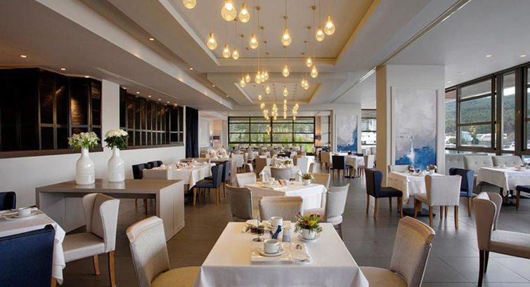 Устроили себе с мужем мини-отдых от детей! Пройдусь по самым важным моментам кратко: Питание нормальное (слышала недовольных русских в отеле по питанию, что мало рыбы и нет морепродуктов), но нас все устроило. Очень-очень понравилось кушать на балконе с видом на яхты)) Неплохое вино. Официанты носятся, за столик усаживают. По номеру, простой но в нем очень пахло канализацией, как и на этаже-неприятно. Аква территория с бассейнами отличная, красивая. Даже испытала некий восторг, когда вышла знакомиться с отелем. Пляж: вот тут нас устроило все! Вода прозрачная-слеза, пляж большой, шезлонгов много и САМОЕ ГЛАВНОЕ играет на весь пляж непринужденно приятная музыка с бич-бара! Мы даже из-за этого ложились специально на последнем ряду, чтоб музыку лучше слышать. Вот бич-бар нас (точнее меня) совсем не порадовал!!!! Мне вообще ничего не наливали! я подходила спрашивала и мне говорили нет! у нас была система все вкл., я говорю тогда что можно??? с удивлением. В ответ мне сок и вода. Шел муж! Ему все-все наливали и еще снеки впридачу давали. Познакомились с девушкой (нашей туристкой)-такая же история! и ей не наливали! На баре работали абсолютно неадекватные девочки! Мы вышли из этой ситуации, мой муж ходил за напитками нам. На баре у бассейна парни все наливали и делали различные коктейли) Вечерами после ужина катались в город на пароходике, очень понравилось. Много лавочек, таверн и развлекух. В целом отель хороший. Если бы была без мужа с подругами и детьми, однозначно пошла бы разбираться по поводу бармен-девушек на бич-баре.