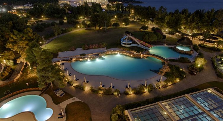 Територія та послуги: Інтернет кафе снек-бар спа центр хімчистка (за запитом, платно) басейни: 2 бари: 4 конференц-зали: 10 (до 2300 осіб) кімната для багажу ресторани: 1 пральня (за запитом, платно) ресторани a la carte: 2 лікар за викликом (платно) біля басейну рушники: безкоштовно басейни: 2 (відкриті) паркування є Wi-Fi безкоштовно вертолітний майданчик магазини біля басейну парасольки, шезлонги: безкоштовно прокат ноутбуків поїзд (прогулянки навколо території) Розваги та спорт: сауна безкоштовно тренажерний зал безкоштовно казино верхова їзда платно гольф платно (18-лункове поле для гольфу) турецька лазня (хаммам) безкоштовно волейбол на пляжі безкоштовно водні види спорту платно футбольне поле безкоштовно настільний теніс безкоштовно спа-центр платно (послуги) баскетбол безкоштовно жива музика нічний клуб (Sithonia) анімація міні-футбол безкоштовно тенісні корти платно (1 безкоштовна година на кімнату на заїзд) навчання в академії тенісу платно фольклорні танці Для дітей: водні гірки (безкоштовно) дитячий басейн: є дитячий клуб послуги няні: за запитом, платно дитяче ліжечко: за запитом, безкоштовно дитячі стільці в ресторані: є Живлення: AI Пляж: вхід у море: піщаний піщаний на пляжі парасольки, шезлонги: безкоштовно душ туалет на пляжі на пляжі рушники: безкоштовно До оплати приймаються кредитні картки: Visa, MasterCard, American Express.
