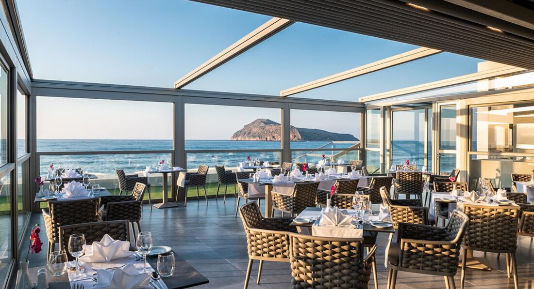 • головний ресторан з видом на південну частину Критського моря пропонує послуги кухарів-професіоналів. Їхні вишукані страви вразять гостей своєю винятковістю. У денний час гості можуть розташуватися на даху ресторану, де, сидячи на просторому майданчику і насолоджуючись їжею або улюбленими напоями, вони можуть вдаватися до споглядання краси острова Святого Феодора.