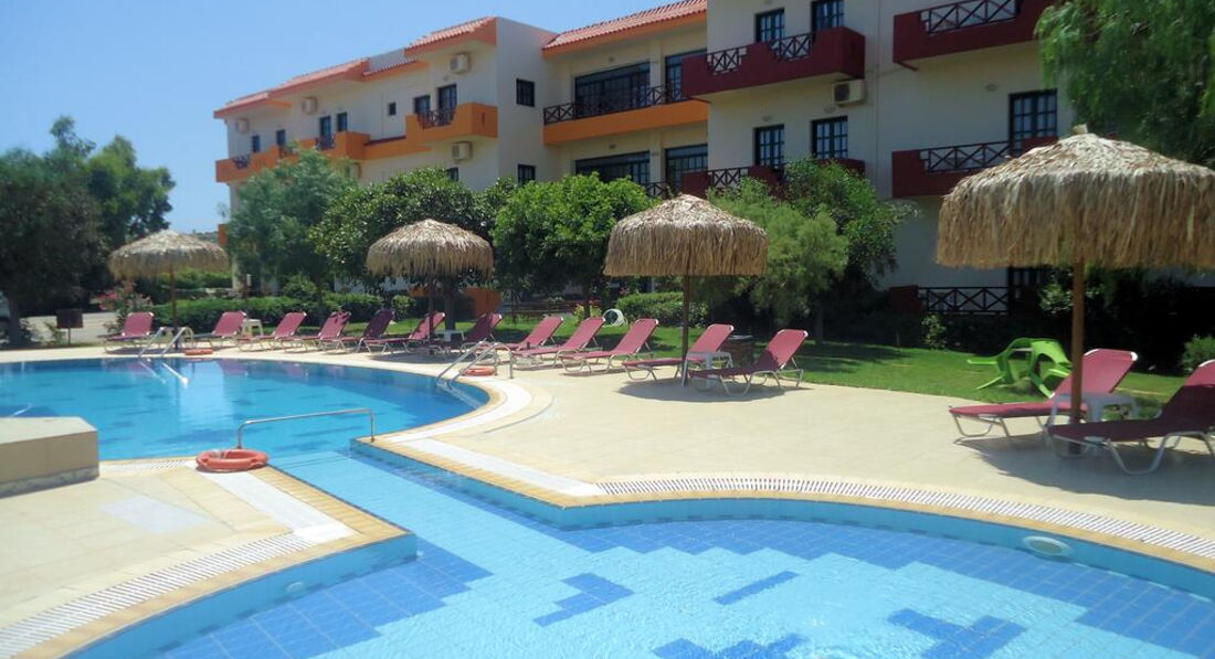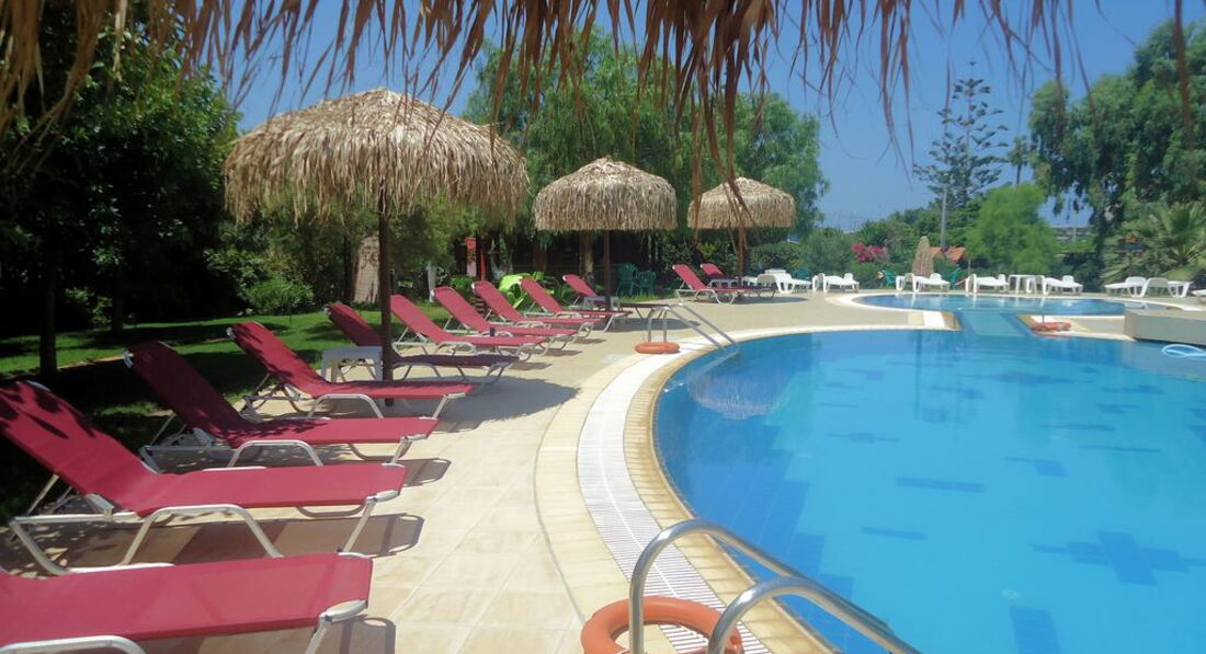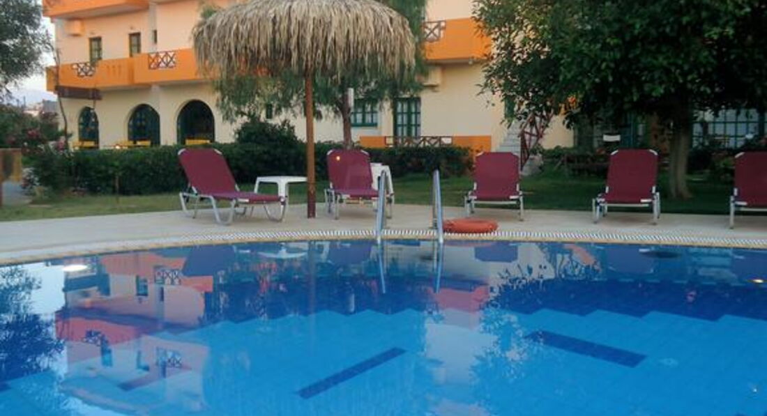 Територія та послуги: • снек-бар (легкі закуски та напої, критська кухня, сервірування сніданків) • сад та тераса • wi-fi на території • автопарковка • оренда велосипедів • оренда автомобілів • поле для гольфу (3 км) Розваги та спорт: • відкритий басейн • гольф Живлення: • RO – без живлення. • BB – сніданок. Пляж: Громадський піщаний пляж за 400 м від готелю. Парасольки, шезлонги – платно. Пляжні рушники – не надаються. До сплати приймаються кредитні картки: До сплати не приймаються банківські картки.