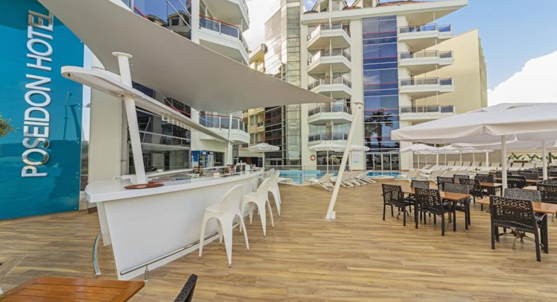 Отдыхали с 14 июля по 23 прошлого года. Я в восторге. На фоне других отелей, даже 5-ти звездочного "Elegance", отель Посейдон сразу выделяется. Все отели типичной постройки, все на одно лицо, а Посейдон самый оригинальный. В отеле нет "все включено", но это даже и не нужно. Особо кушать не хочется днем, да и если захочется, цены в отеле не высокие. Кормят просто шикарно, я отдыхала раньше и в Белеке, и в Кемере только в 5-ти звездочных отелях, даже там нет такой еды. Все очень вкусно, персонал работает быстро, все приветливые. Обслуживание номеров отличное, каждый день уборка номера, и 3 раза смена белья, если сами захотите чтобы поменяли белье, просто попросите и вам все сделают). Территория там маленькая, но я считаю что она и не нужна там. Отель находится в городе, причем расположение очень удобное, до всего можно дойти пешком. Минут 30 пешком прямо по набережной и вы дойдете до барной улицы, где куча клубов и везде вход бесплатный))Минут 7 пешком и вы увидете супермаркет "MMM Migroc" Посетили также кучу экскурсий, на яхте по Эгейским островам, были также на яхте на ночной дискотеке, на обзорной экскурсии, на барной улице, в аквапарке. Кстати он находится рядом с отелем, на горе)) оттуда великолепный вид на город. Я всем советаю ехать в Посейдон! Не пожалеете!!!! В след лето только Посейдон!!!