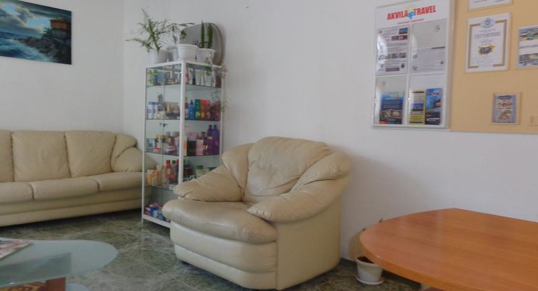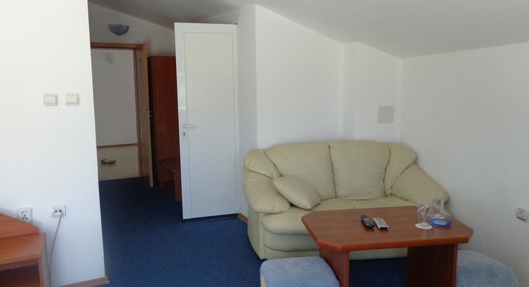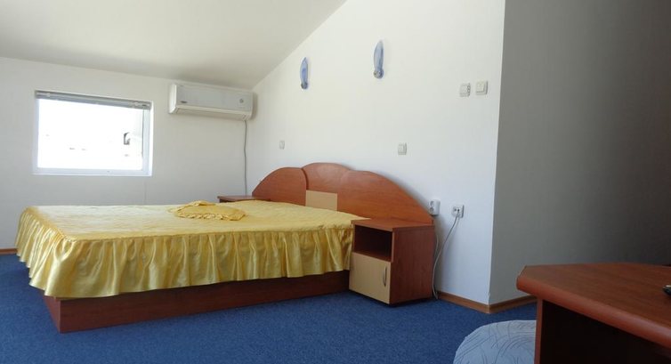 Обслуживание: отличное и ненавязчивое. Очень удобное расположение. До одного пляжа метров 100, до второго метров 200. В номере холодильник, телевизор и кондиционер, горячая вода постоянно (бойлер). Без питания (но это в Болгарии не проблема). Рекомендую.