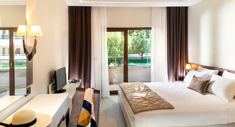 обід та вечеря в ресторані a la carte Acropolis пляжні рушники у номері Територія та послуги: пральня платно (за запитом) винний льох (Cava Idea) мінімаркет спа центр хімчистка (за запитом, платно) кімната для багажу бари: 3 басейни: 1 ресторани: 1 ресторани a la carte: 1 лікар за викликом (платно) паркування є басейни: 1 (відкритий, з прісною водою) Wi-Fi безкоштовно обмін валюти біля басейну парасольки, шезлонги: безкоштовно кальян-бар Розваги та спорт: сауна платно спа-процедури є прокат тенісних ракеток та м'ячів безкоштовно джакузі платно масаж платно уроки тенісу платно тренажерний зал безкоштовно волейбол безкоштовно турецька лазня (хаммам) платно міні-футбол безкоштовно дайвінг-центр платно анімація безкоштовно (денна, вечірня) тенісний корт безкоштовно (2, жорстке покриття) Для дітей: дитяче меню в ресторані (за запитом, безкоштовно) дитячий майданчик (під відкритим небом, без огородження, покриття – каучук) дитячі клуби: 1 (від 4 до 12 років) відділення для дітей у басейні для дорослих послуги няні: за запитом, платно підігрівач для пляшечок за запитом, безкоштовно ванна для купання за запитом безкоштовно дитяче ліжечко: за запитом, безкоштовно (манеж) горщик за запитом, безкоштовно дитячі стільці в ресторані: за запитом Живлення: UAI Пляж: піщано-гальковий вхід у море: піщаний на пляжі парасольки, шезлонги: безкоштовно відкрита берегова смуга пляж обладнаний дерев'яними настилами на пляжі рушники: депозит безкоштовні сейфи на пляжі для дрібних речей До оплати приймаються кредитні картки: Master, Visa, Diners.