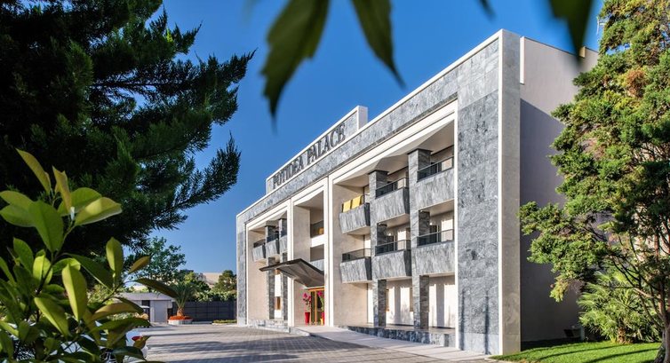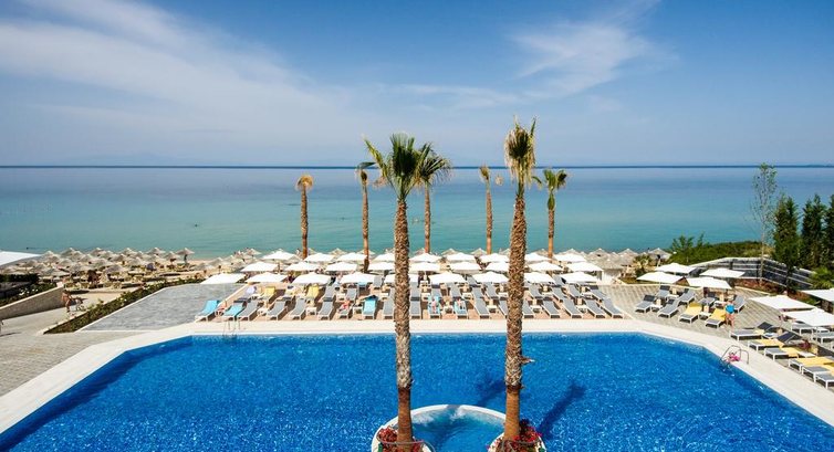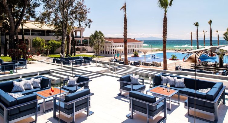Стильний готель розташований у мальовничому місці: на перешийку між двома затоками, біля моря, звідки відкривається панорамний вид на гору Олімп.