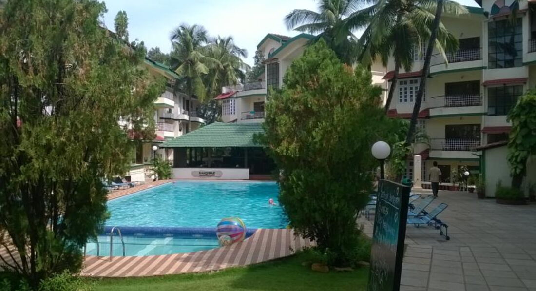 Прилетели рано утром , размещать не стали, заплати немного долларов- расселим. Те кто сразу заплатил размещали в нормальные номера. Я попытался без денег - показали темницу с мокрицей! Пришлось заплатить 40 баксов, дали хороший номер (124) прямо над решепсен- 4 этаж, вид на бассейн. Убирали каждый день, оставляли в номерах вещи -краж не было.Завтраки скромные. Бассейн чистый в основном занимали места с утра иностранные пенсионеры.До моря часть дороги пыльная и грязная , после перекрестка с главной дорогой везде асфальт, время в пути -15 минут. Коров на пляже в тот год было много, даже были случаи, когда они воровали из пакетов у нас бананы.А в итоге все великолепно. ГОА- СУПЕРРРР.