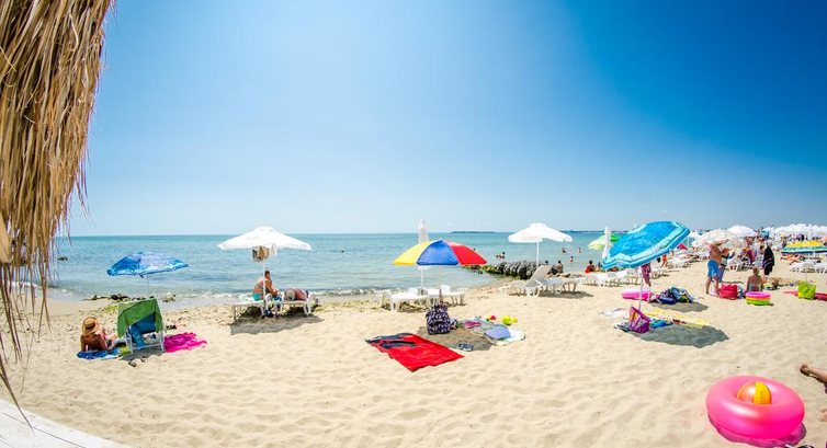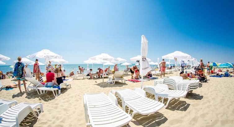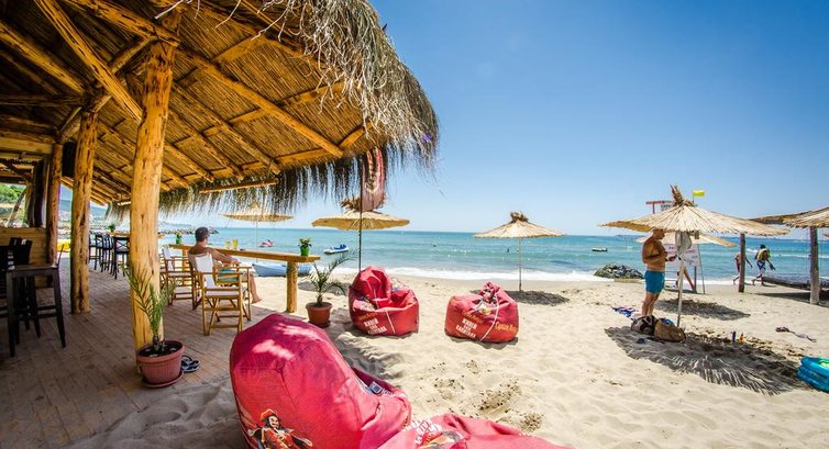3) Пляж. А точнее его отсутствие . Лежаков нет. Можете пройти метров 500 напрааво или налево и взять в аренду 2 лежака +зонт за 24 лева.(13 евро). Я считаю это дорого, в итоге большая часть отдыхающих на полотенчиках со своими зонтами располагается на песочке. К 20 числам июня народу стало много, так что привет Анапа:-)