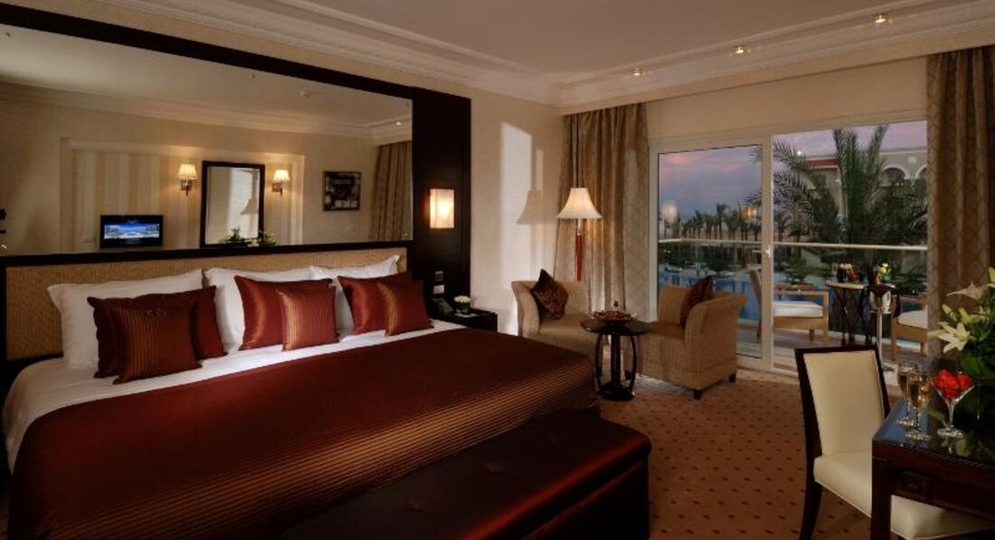 Первый раз в Египте, раньше думал, что не приеду никогда, но решил рискнуть, уж очень много мне рассказывали фанаты Красного моря. Отель выбирал по отзывам на этом сайте, не прогадал. Среди прочих плюсов, одним из главных, для меня, является концепция "только для взрослых", это не первый отель с такими условиями проживания, и с каждым разом она нравится мне все больше и больше. Как это прекрасно: никаких визжащих или вечно ноющих детишек, мамаш, орущих на своих невменяемых недорослей и т.д. Не знаю как в другое время, но в конце октября - начале ноября здесь полный релакс. Заселение прошло в течение 10-ти минут, отличный номер делюкс с невероятных размеров кроватью, ванной - душевой - туалетом, гардеробной и видом на сад.