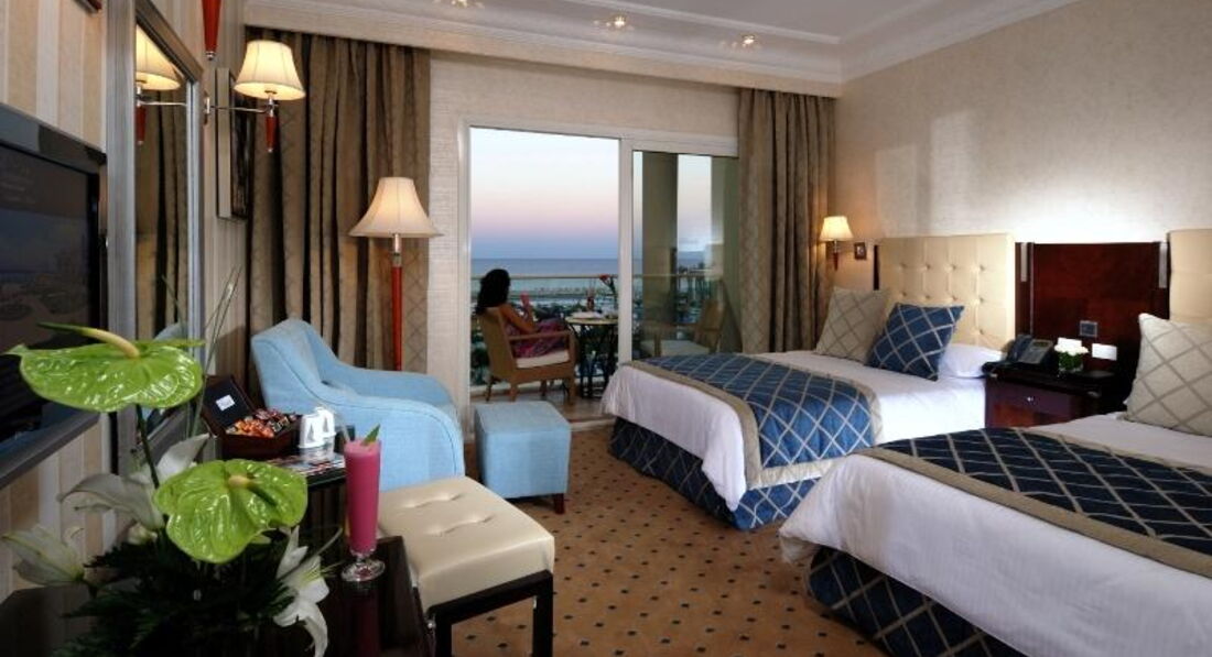 Отдыхали в данном отеле с 1.11 по 8.11. Приехали в отель около 11 утра, нас встретили, проводили на завтрак. номер мы бронировали Модэрейт, и работники ресепшена предложили нам за доплату 20 уе в сутки - 140 уе Супериор с видом на море. Сторговались на 70 долларах доплаты, и взяли Супериор. Сказав, что номер не готов, нам предложили переодеться в служебном помещении и идти на пляж, что мы и сделали.