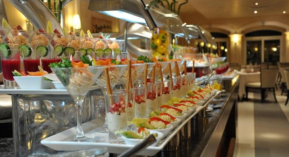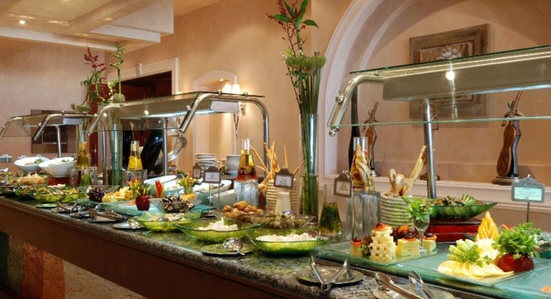 Включає: сніданок (07:00-11:00), обід (13:00-15:00), вечеря (19:00-21:30), пізня вечеря (23:30-01:00) - шведська стіл; закуски протягом дня у барах готелю, алкогольні та безалкогольні напої місцевого виробництва, а також певний вибір імпортних напоїв. Свіжі соки (під час сніданку), морозиво (під час обіду та вечері) - безкоштовно. Молодятам – легка вечеря при свічках в одному з ресторанів A la Carte, іменинникам – торт.